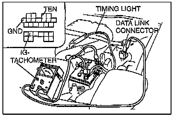 4. Connect a tachometer to the data link connector IG-terminal as shown.