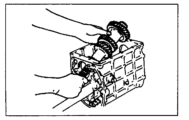 6. Set the countershaft assembly into the case, making sure the countershaft gears engage each gear of the mainshaft assembly.