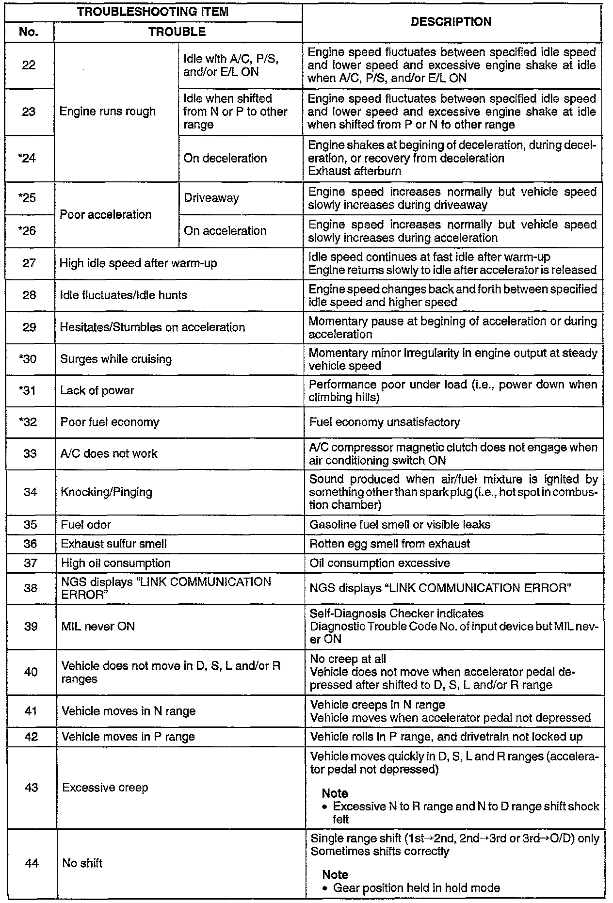 DESCRIPTION OF DRIVEABLITY PROBLEMS