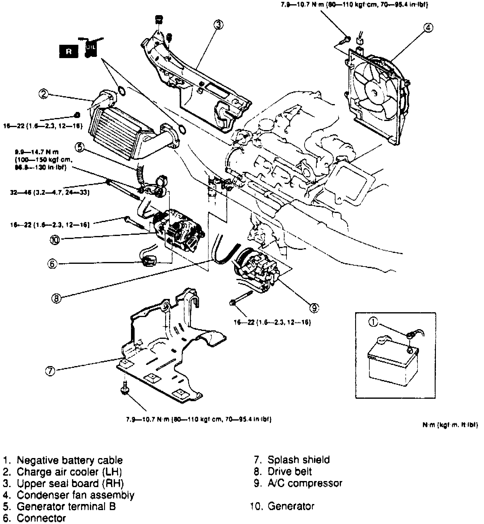 c. Torque lefthand charge air cooler nuts to 12 - 16 ft.lb.
