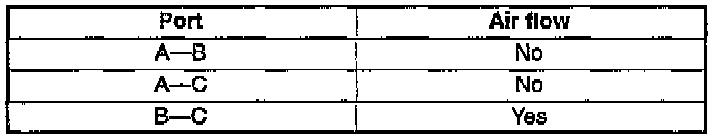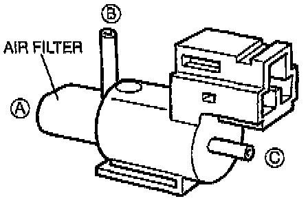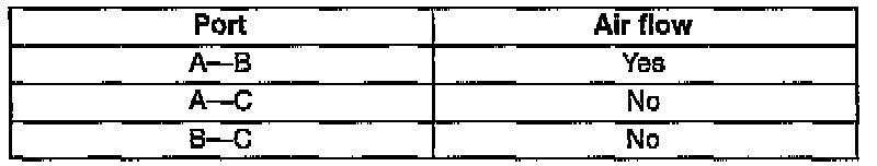 4. Apply battery positive voltage to terminal A and ground terminal B of the solenoid valve. Verify that air flows as shown below.