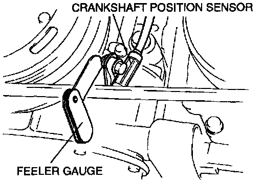 - Measure the air gap between the crankshaft pulley and the crankshaft position sensor by using a feeler gauge.