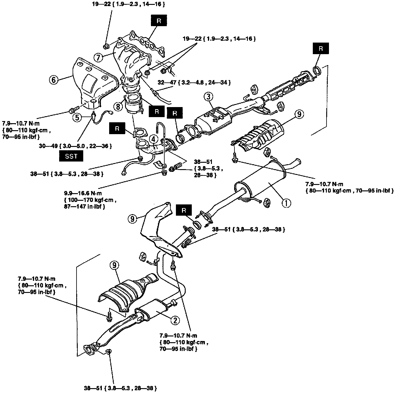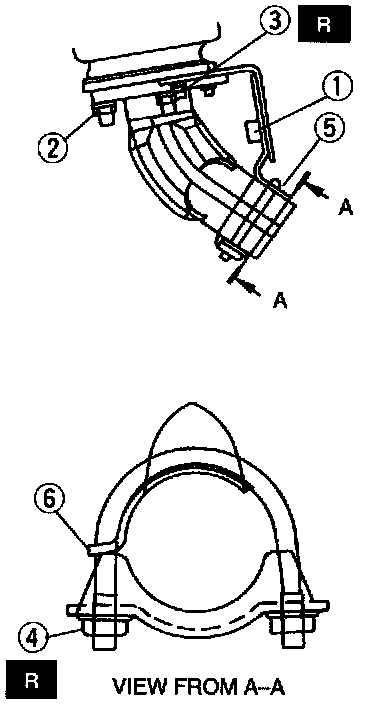 - Check for correct alignment at "5" (front pipe and bracket).
