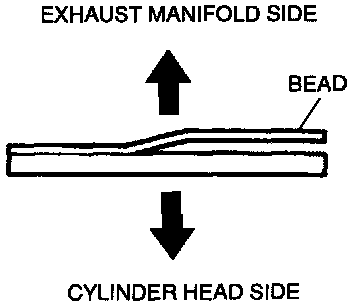 Face the bead of the gasket toward the exhaust manifold as shown, and install the exhaust manifold.