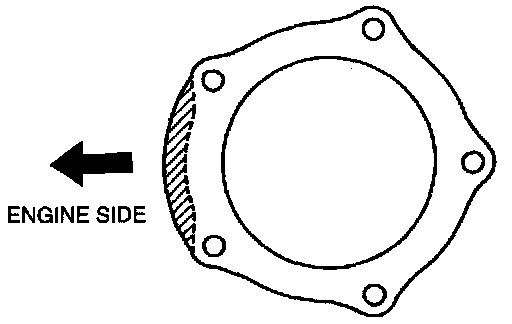 - Verify that "3" (flange and bracket) contacts with "1" (cylinder block and bracket), then tighten nut "3".