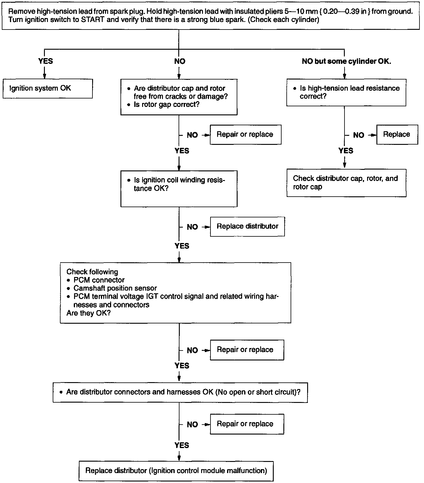 WARNING: High voltage in the ignition system can cause strong electrical shock. Avoid direct contact to the vehicle body during the following spark test.
