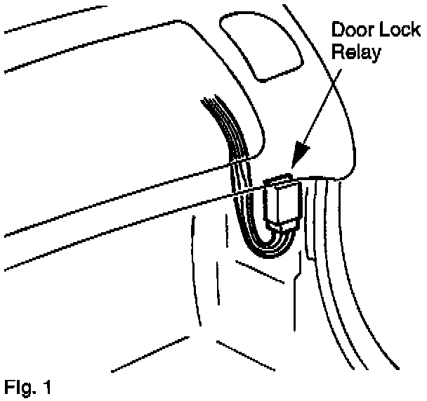 ^ Locate the green door lock relay at the passenger's side kick panel (just below dash). Refer to Fig. 1