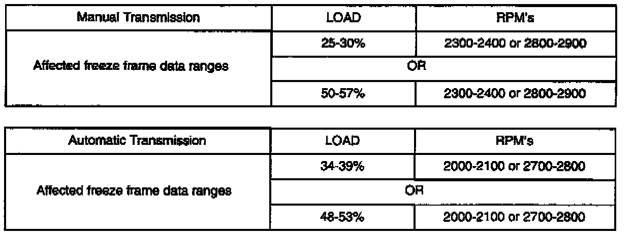 3. If PCM was needed and and has been replaced with and "A" suffix PCM and the recorded freeze frame data is within the affected ranges as indicated in the chart shown, install the EGR boost sensor noise filter per installation procedures.