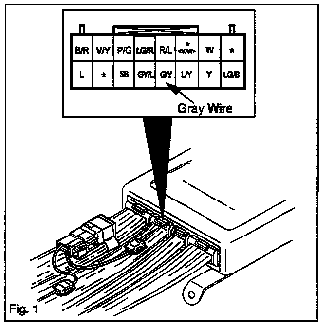 3. Locate the gray wire (3H wire) in the B1-01 connector and cut approximately 3cm (125 in.) from the terminal. Refer to Fig. 1.