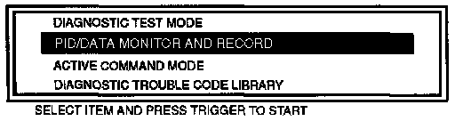 2. Select the "PID/DATA MONITOR AND RECORD" function of the New Generation Star (NGS) tester.