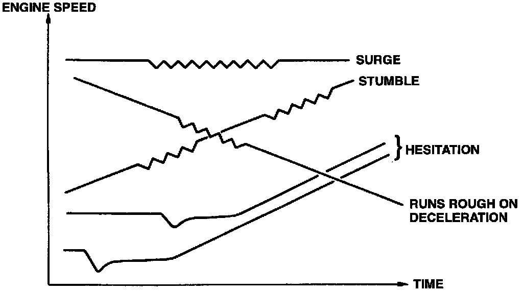 A dip or flat spot in performance just after the accelerator pedal is depressed.