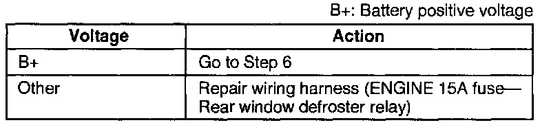 Measure the voltage at the (B/W) terminal wire of the rear window defroster relay connector.