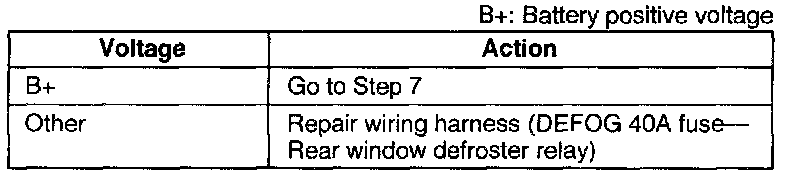 2. If correct, repair the wiring harness (CPU-rear window defroster switch).