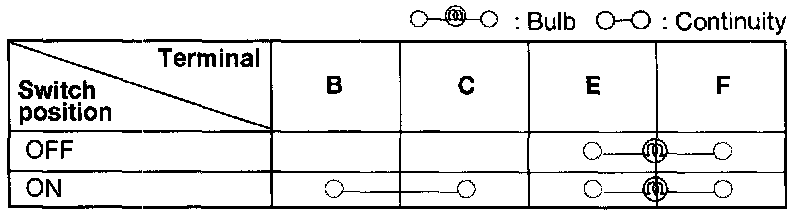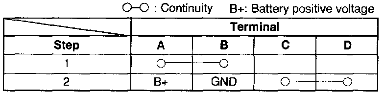 3. Check for continuity between the terminals of the relay while applying battery positive voltage as indicated below.