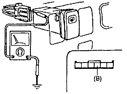 3. Check for continuity between the (B) terminal wire of the rear window defroster switch connector and ground.