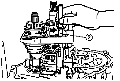 1. Shift to 2nd gear and position the shift fork and shift rod assembly as shown.