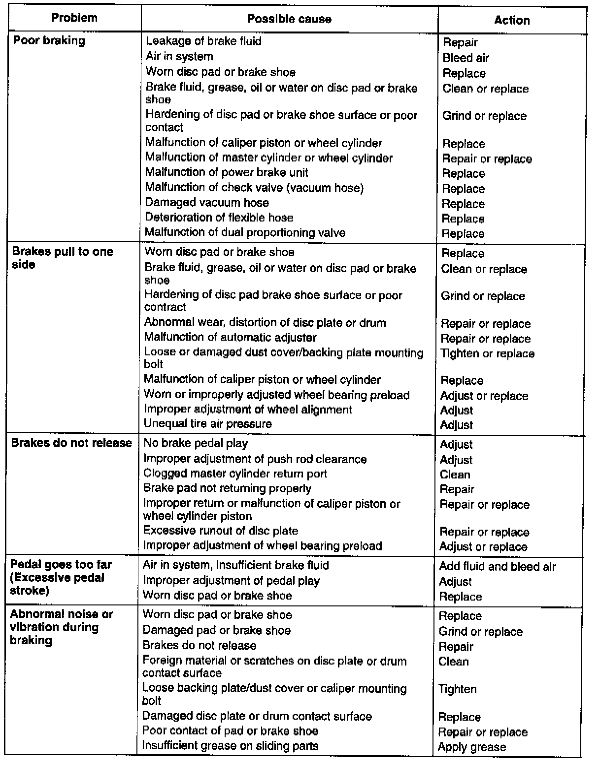 Conventional Brake Trouble Shooting Guide: