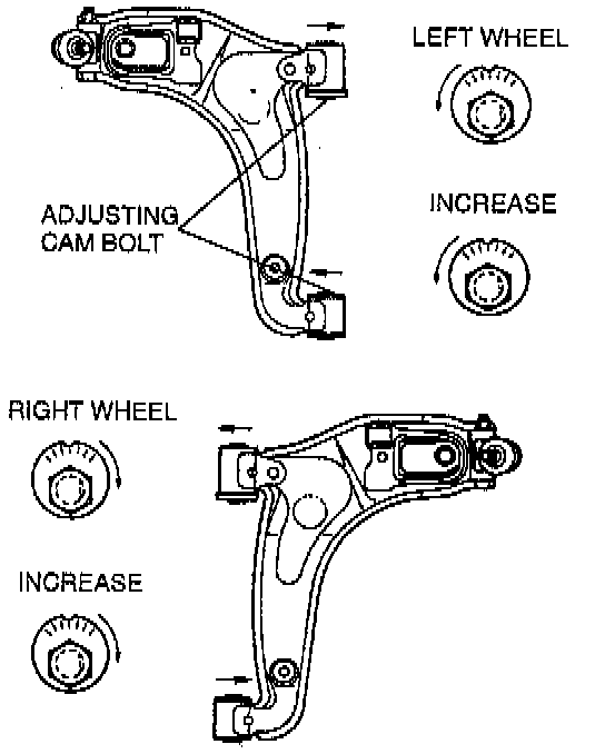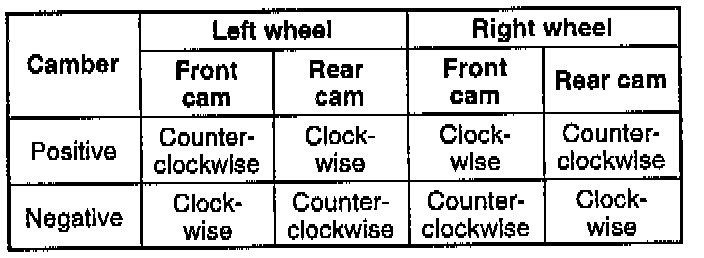2. Turn the front and rear adjusting cam bolts the same amount in the opposite direction to provide the correct camber angle.