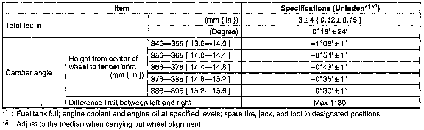 CAUTION: Adjust the toe-in before adjusting the camber.