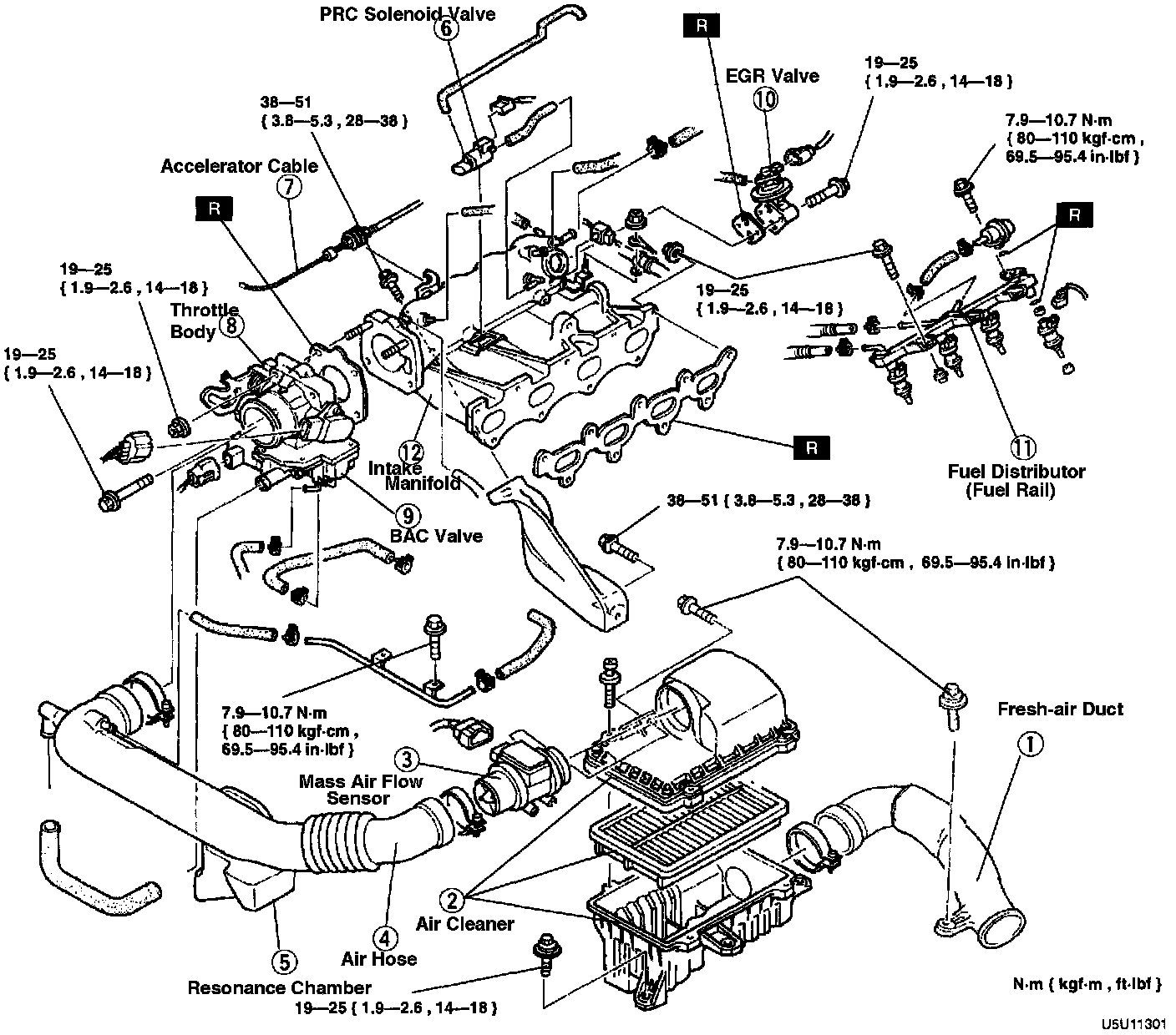 INTAKE AIR COMPONENT REMOVAL/INSTALLATIONWARNING: Fuel vapor is hazardous. It can very easily ignite, causing serious injury and damage. Always keep sparks and flames away from fuel. Fuel line spills and leaks are dangerous. Fuel can ignite and cause serious injuries or death and damage. Fuel can also irritate skin and eyes. To prevent this, always complete the "Fuel Pressure Release Procedure".