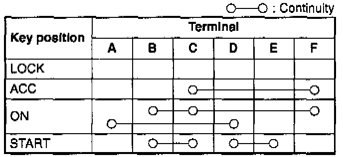 3 .Check for continuity between the ignition switch terminals by using an ohmmeter.