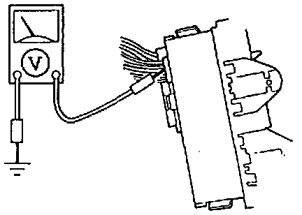 2. Measure the voltage at the (L/R) terminal wire of the keyless unit connector in the trunk compartment.