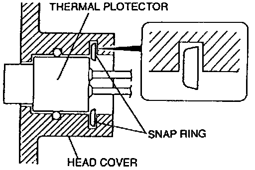3. Install the snap ring so that its chamfered edge faces the thermal protector. Make sure the snap ring is seated securely in its groove.