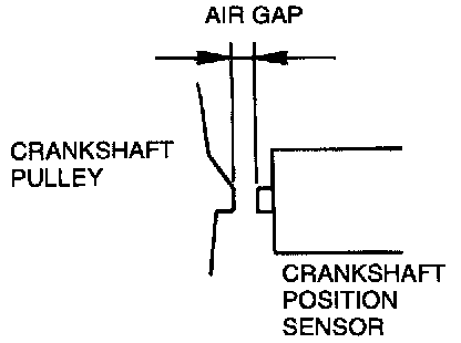 2. Adjust the air gap between the crankshaft pulley projection and the crankshaft position sensor by using a feeler gauge.