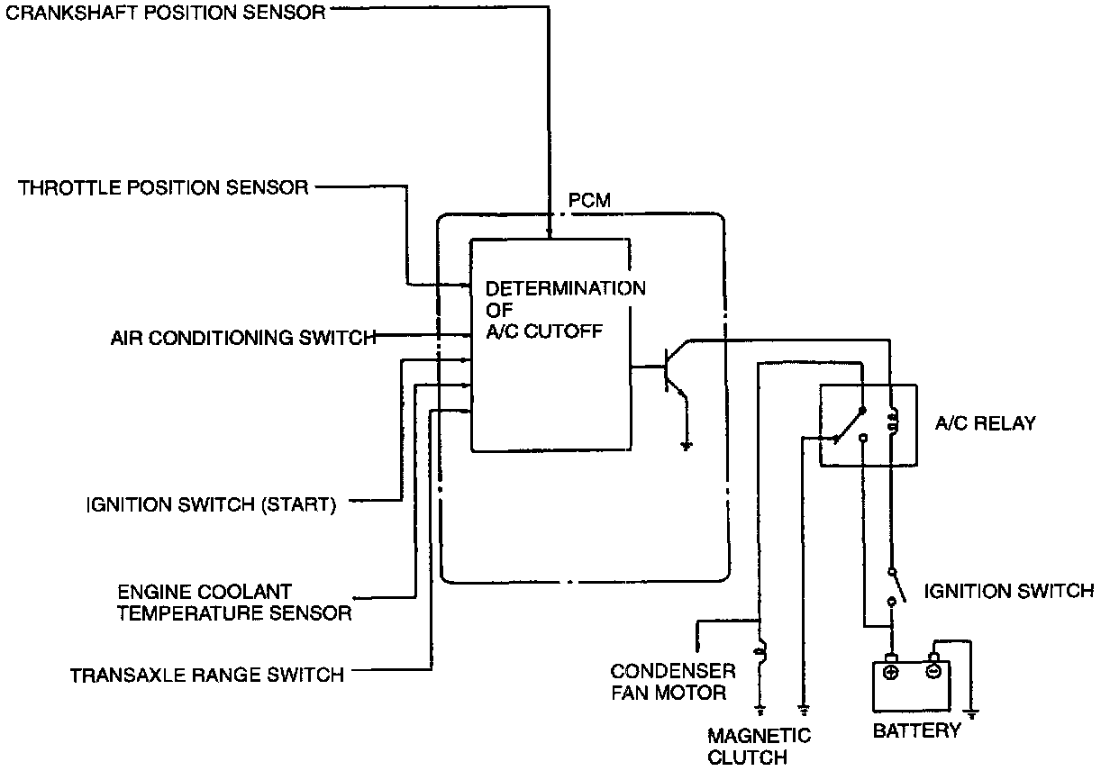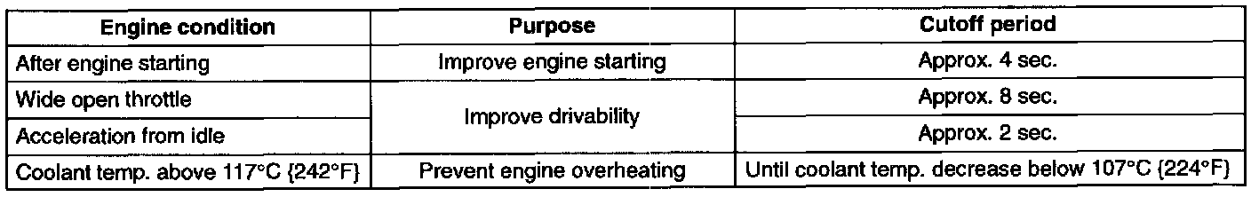 An A/C cutoff system is used to improve idle smoothness just after starting the engine and to improve acceleration performance.