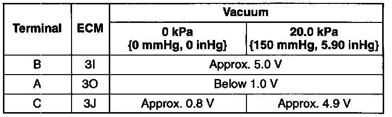 4. If EGR valve position signal voltage is not as specified, check the wiring harness and 3J terminal of the PCM.