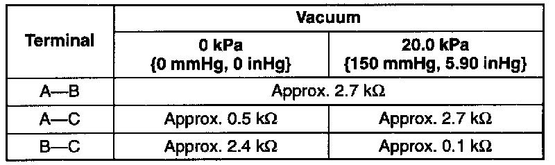 3. Measure the resistance between the terminals as shown while vacuum is applied.