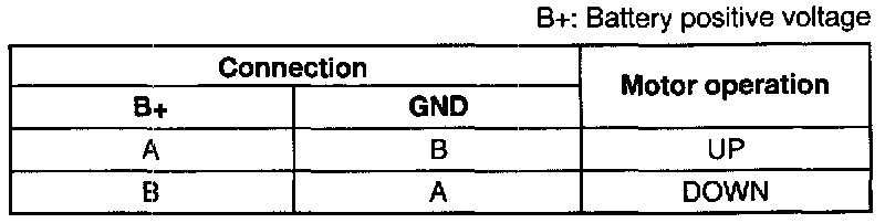 Apply battery positive voltage and check the operation of the motor as indicated.