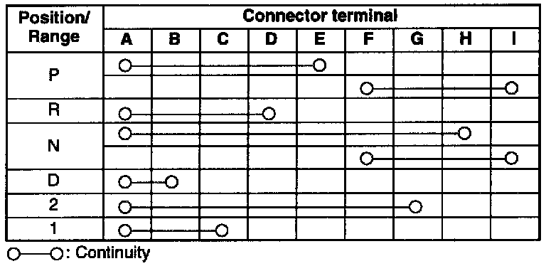 4. Check continuity of the transaxle range switch.