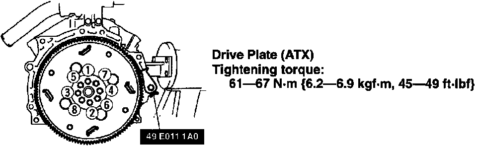 Tightening torque: 23.1 - 25.9 Nm {2.35 - 2.65 kgf/m, 17 - 19.1 ft. lbs.}