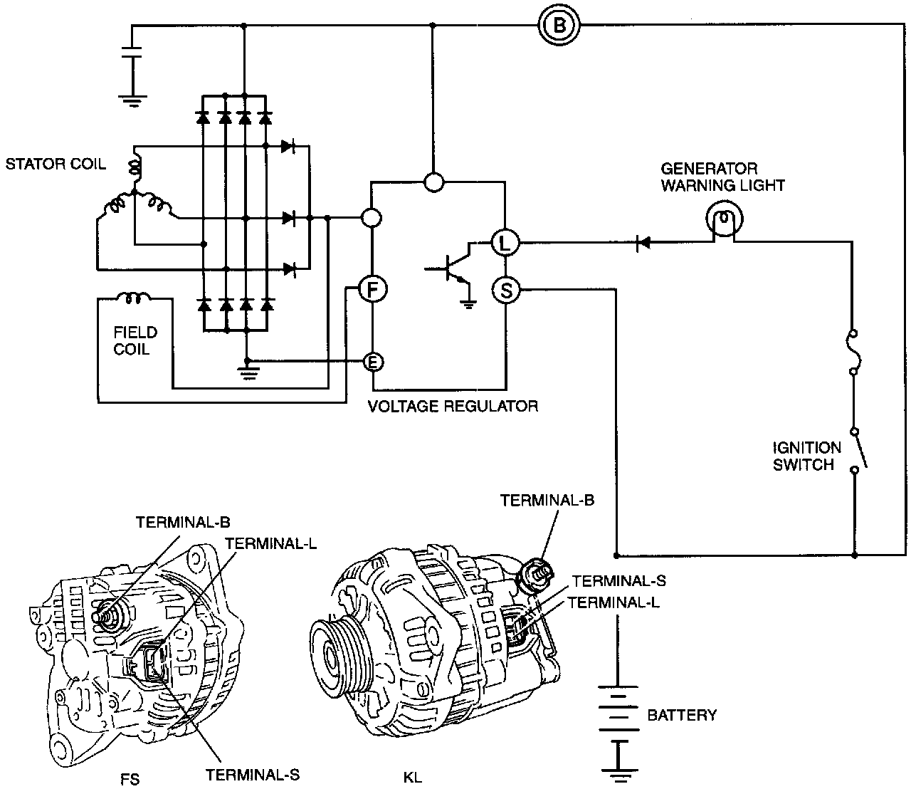 The generator has an on-board diagnosis system to warn the operator of the following problems in the charging system. If a problem arises, the generator warning light illuminates.