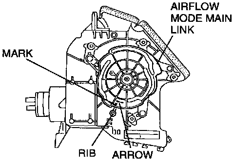 2. Set the mark of the airflow mode main link to the rib of the heater unit as shown in the figure.