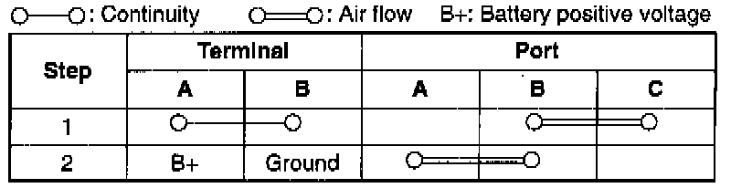 Check for air flow between ports of the solenoid valve.