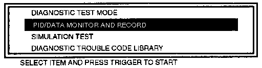 9. Select the PID/DATA MONITOR function on the NGS display.