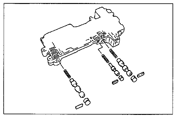 4. Insert the pressure regulator valve, pressure regulator spring, pressure regulator spring seat, regulator plug sleeve, pressure regulator plug, and stop plug. Secure them with the roll pin.