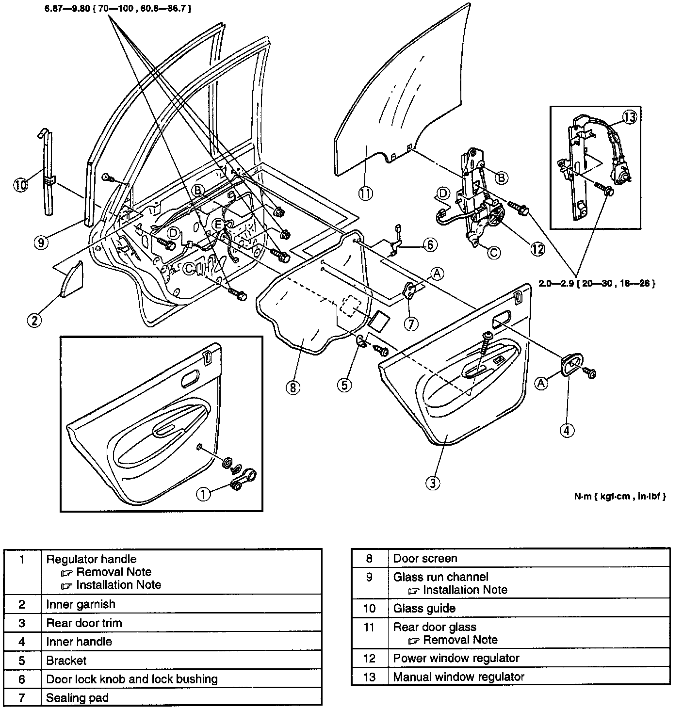 1. Raise the front edge of the rear door glass about 50 mm (2.0 in) from the fully lowered position.
