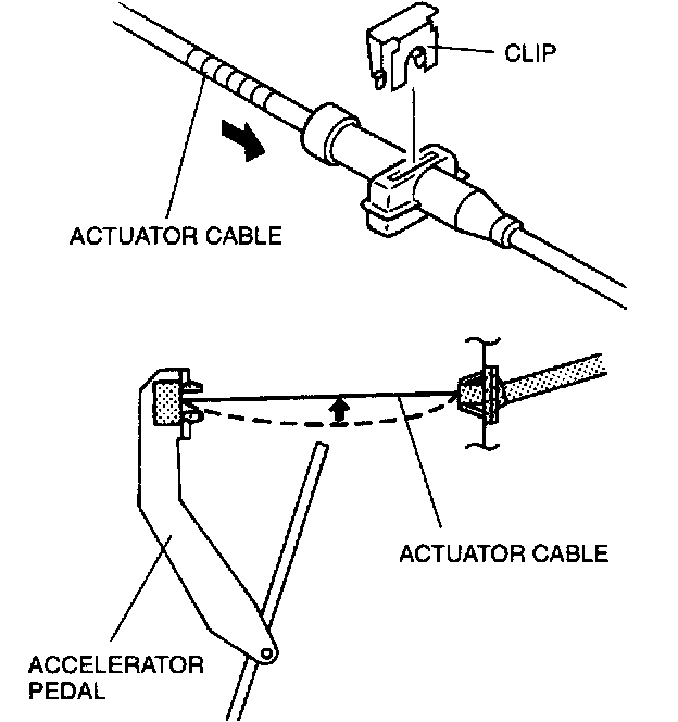 2. Pull the actuator cable until the throttle lever stands moving to eliminate the actuator cable play.