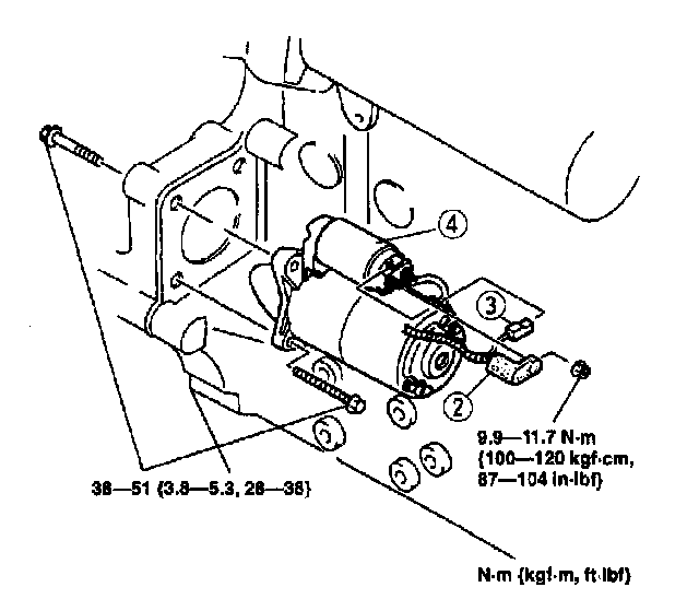 WARNING: When the battery cable are connected, touching the vehicle body with starter terminal B will generate sparks. This can cause personal injury, fire, and damage to the electrical components. Always disconnect the battery before performing the following operation.1. Remove the battery.