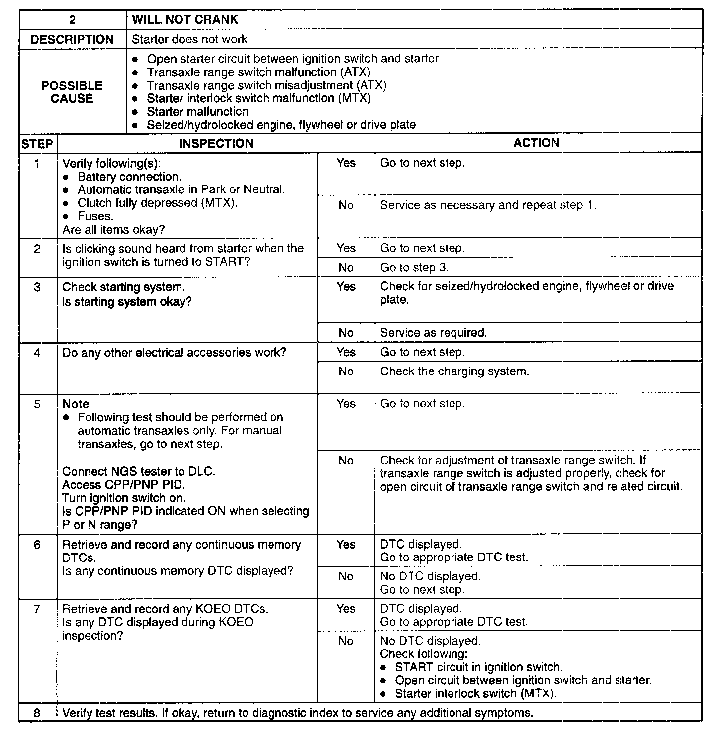 2 Will Not Crank