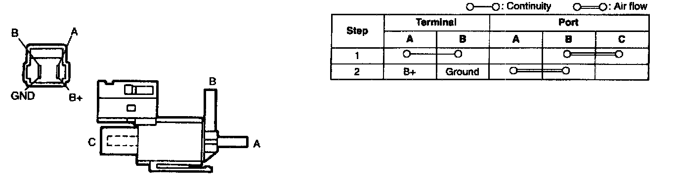 Inspect air flow between ports of the solenoid valve.