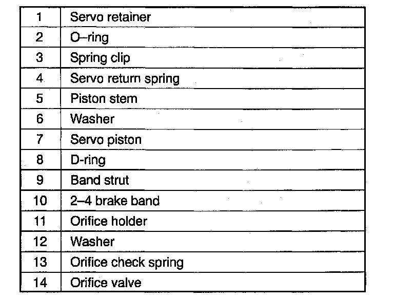 BAND SERVO DISASSEMBLY/ASSEMBLY1. Disassemble in the order indicated in the table.