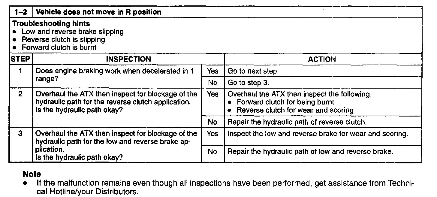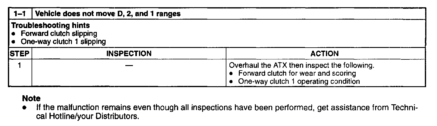 Vehicle Does Not Move in D, 2, or 1 Ranges