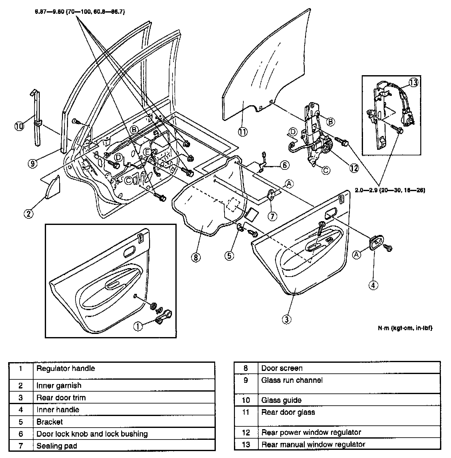 1. Raise the front edge of the rear door glass about 50 mm {2.0 in} from the fully lowered position.