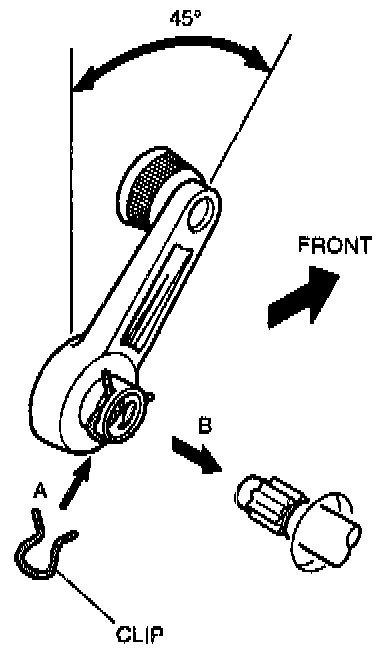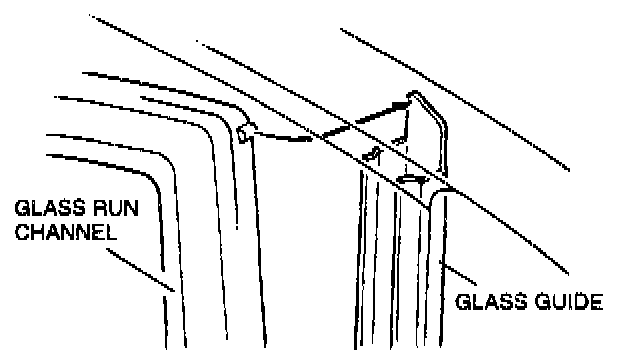 ^ Align the dowel of the glass run channel with the edge of the glass guide then install the glass run channel.