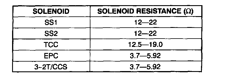 3. Connect the negative lead of the ohmmeter to the appropriate solenoid (EPC, SST, SS2, TCC, 3-2T/CCS) jack.