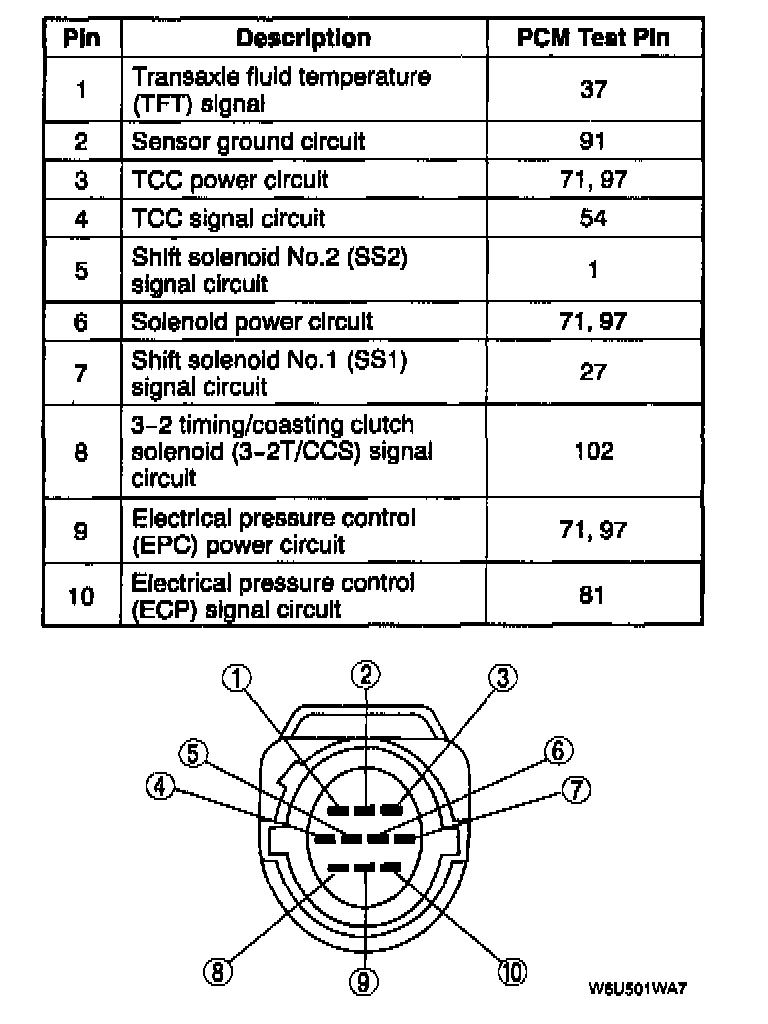 Solenoids (Electronic pressure control (EPC), Shift solenoid No.1 (SS1), Shift solenoid No.2 (SS2), TCC, 3-2 Timing/coasting clutch solenoid (3-2T/CCS)